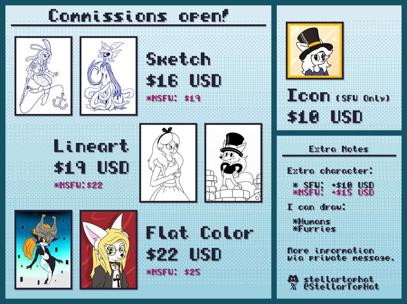 Please refer to the Terms Of Service button in the previous page for more information on the commission process!
